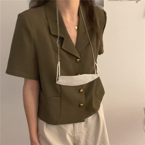 Heart Shaped Button Short Sleeve Blouse Shirt