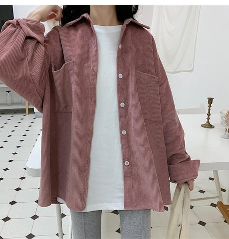 Long Sleeve Loose Corduroy Shirt