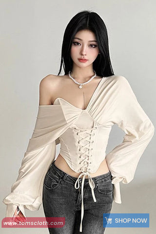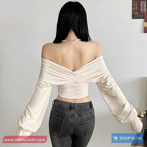 Buy Long Sleeve Slash Neck Sexy Bandage Cropped Shirt from Tomscloth for your outfit of the day. This item is in stock and ready to order. Enjoy 10% discount with using this code: TOMS_MANIA .