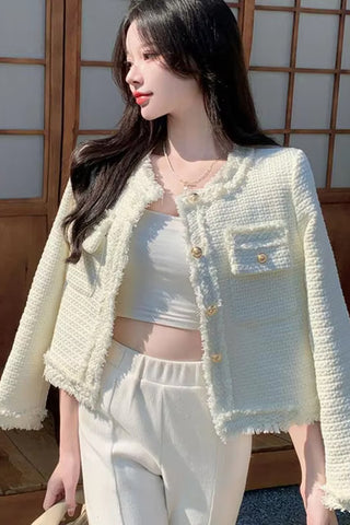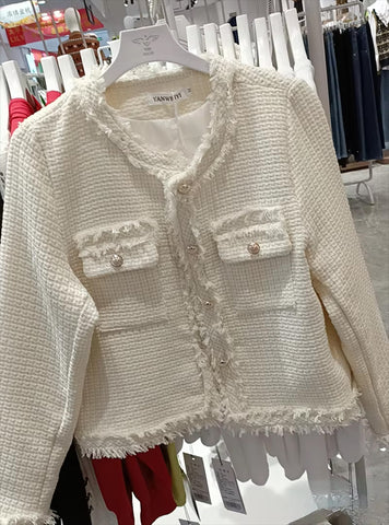 Buy Long Sleeve White Elegant Tweed Jacket from Tomscloth for your outfit of the day. This item is in stock and ready to order. Enjoy 10% discount with using this code: TOMS_MANIA .