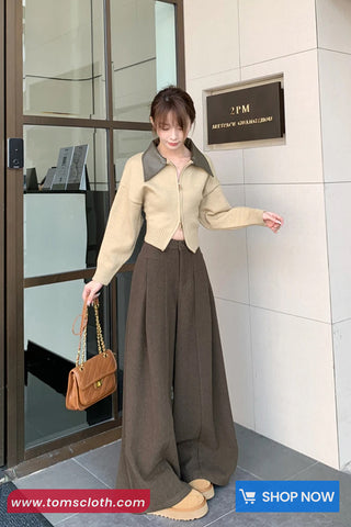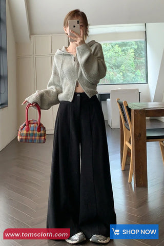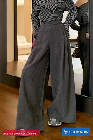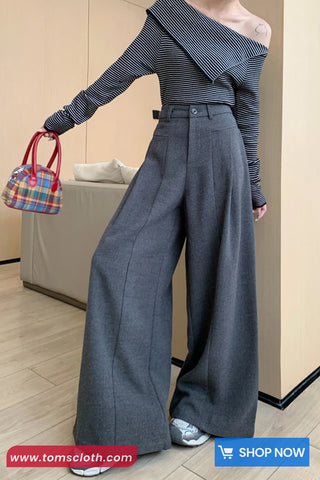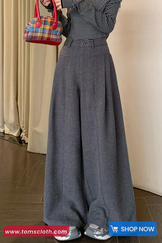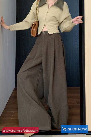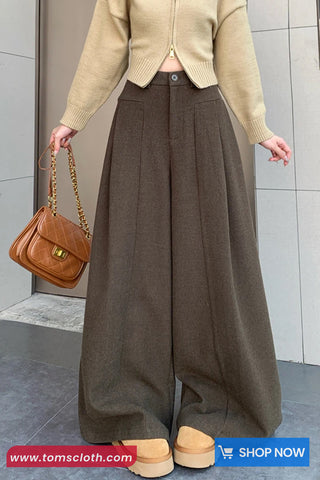 Buy Loose Elegant Wide Leg Woolen Pants from Tomscloth for your outfit of the day. This item is in stock and ready to order. Enjoy 10% discount with using this code: TOMS_MANIA .