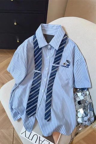 Buy Loose Retro Blue Striped Blouse With Tie from Tomscloth for your outfit of the day. This item is in stock and ready to order. Enjoy 10% discount with using this code: TOMS_MANIA .