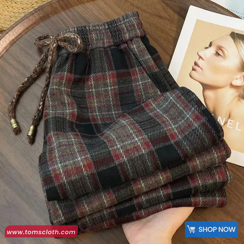 Buy Loose Retro Plaid Drawstring Elegant Pants from Tomscloth for your outfit of the day. This item is in stock and ready to order. Enjoy 10% discount with using this code: TOMS_MANIA .
