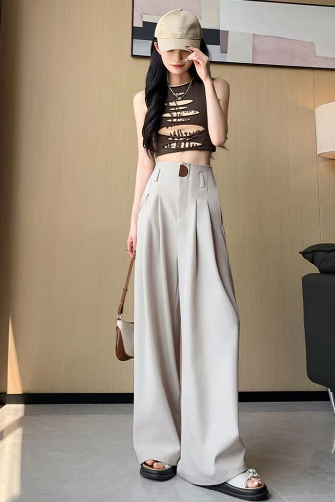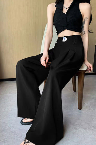 Loose Wide Leg Elegant Button Office Pants