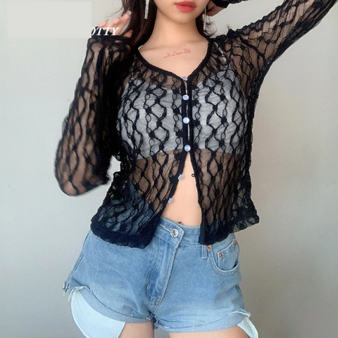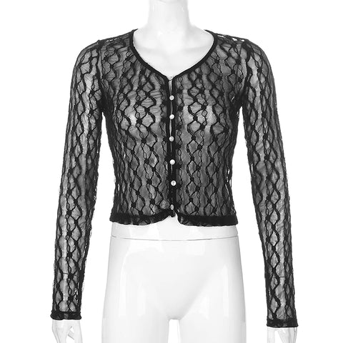 Sexy Lace Mesh Long Sleeve Transparent Shirt