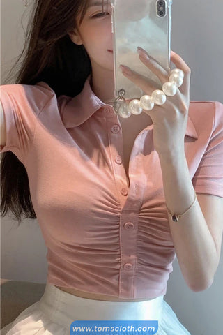 Buy Sexy Turn Down Collar Cropped Slim Shirts from Tomscloth for your outfit of the day. This item is in stock and ready to order. Enjoy 10% discount with using this code: TOMS_MANIA .