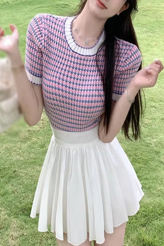 Short Sleeve Mock Neck Knitted Slim Shirt