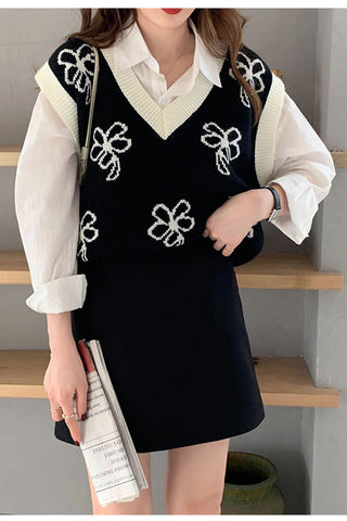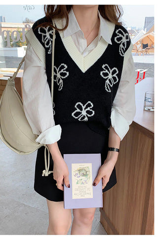 Flower V-Neck Knitted Vest Sweater