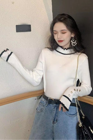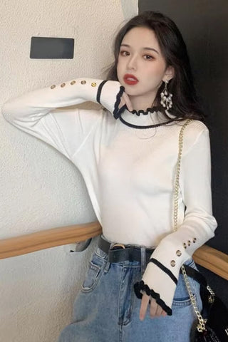 Long Sleeve Mock Neck Slim Design Ruffles Sweater
