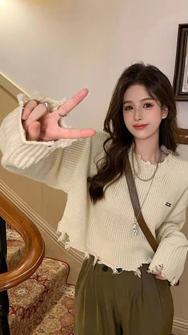 Buy Long Sleeve Tassel Ripped Crop Sweater from Tomscloth for your outfit of the day. This item is in stock and ready to order. Enjoy 10% discount with using this code: TOMS_MANIA .