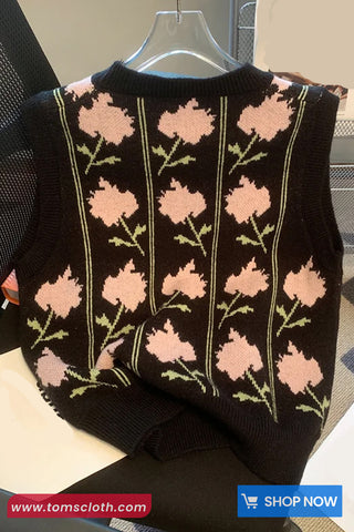Buy Sleeveless Floral Pattern Vest Sweater from Tomscloth for your outfit of the day. This item is in stock and ready to order. Enjoy 10% discount with using this code: TOMS_MANIA .