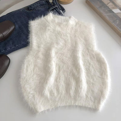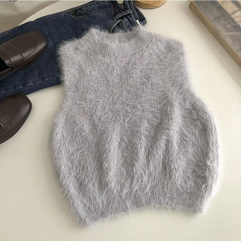Sleeveless O-Neck Faux Fur Sweater