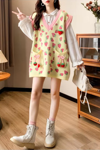 Buy Strawberry Pattern Sleeveless Vest Knitted Sweater from Tomscloth for your outfit of the day. This item is in stock and ready to order. Enjoy 10% discount with using this code: TOMS_MANIA .