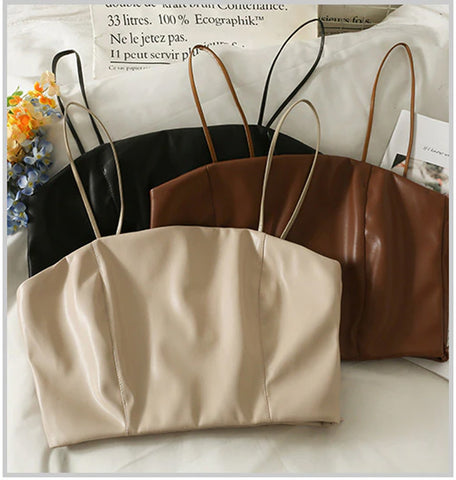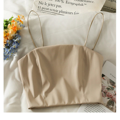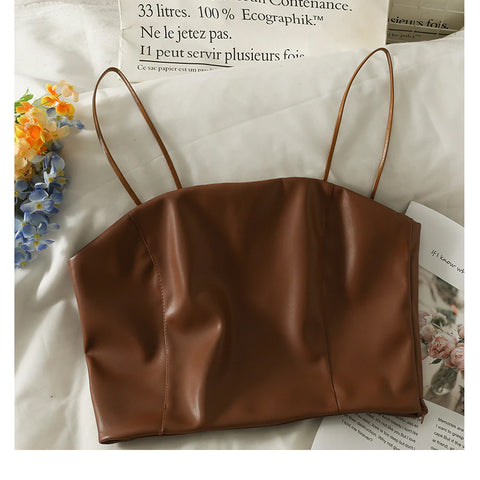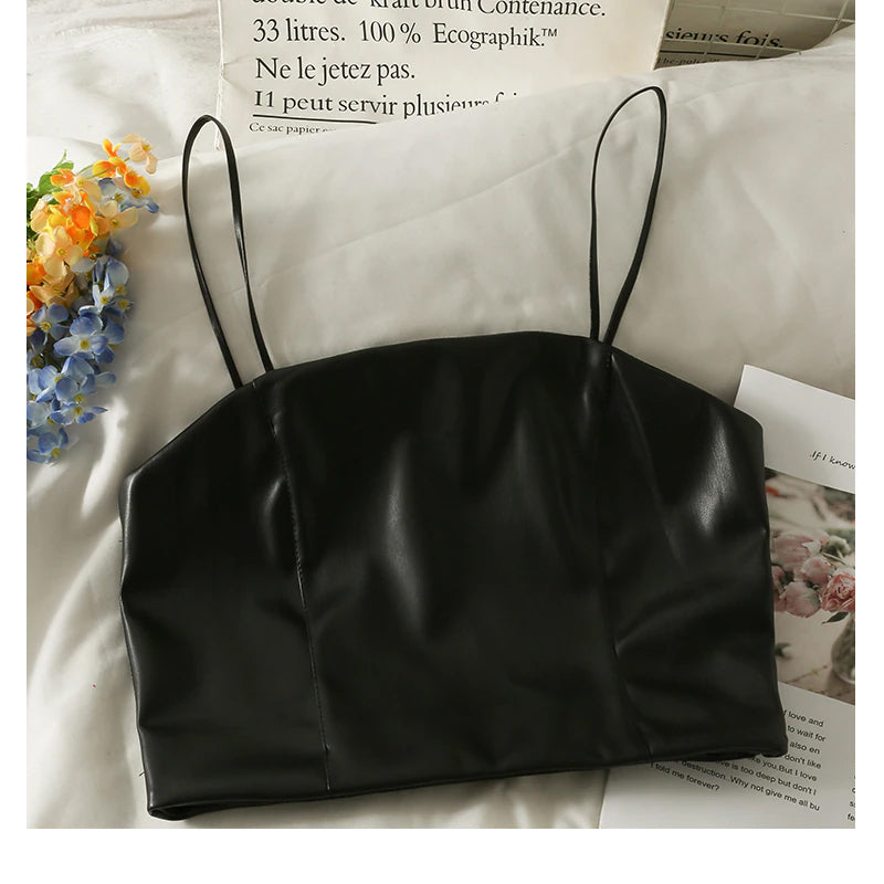 Sexy Leather Spaghetti Strap Cropped Tank Top