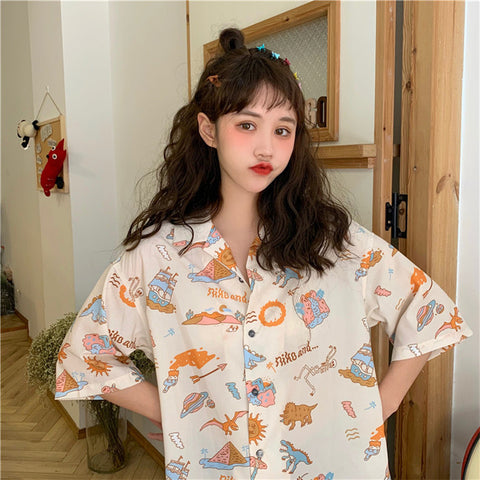 Classic Dinosaur Cartoon Printed Blouse Shirts