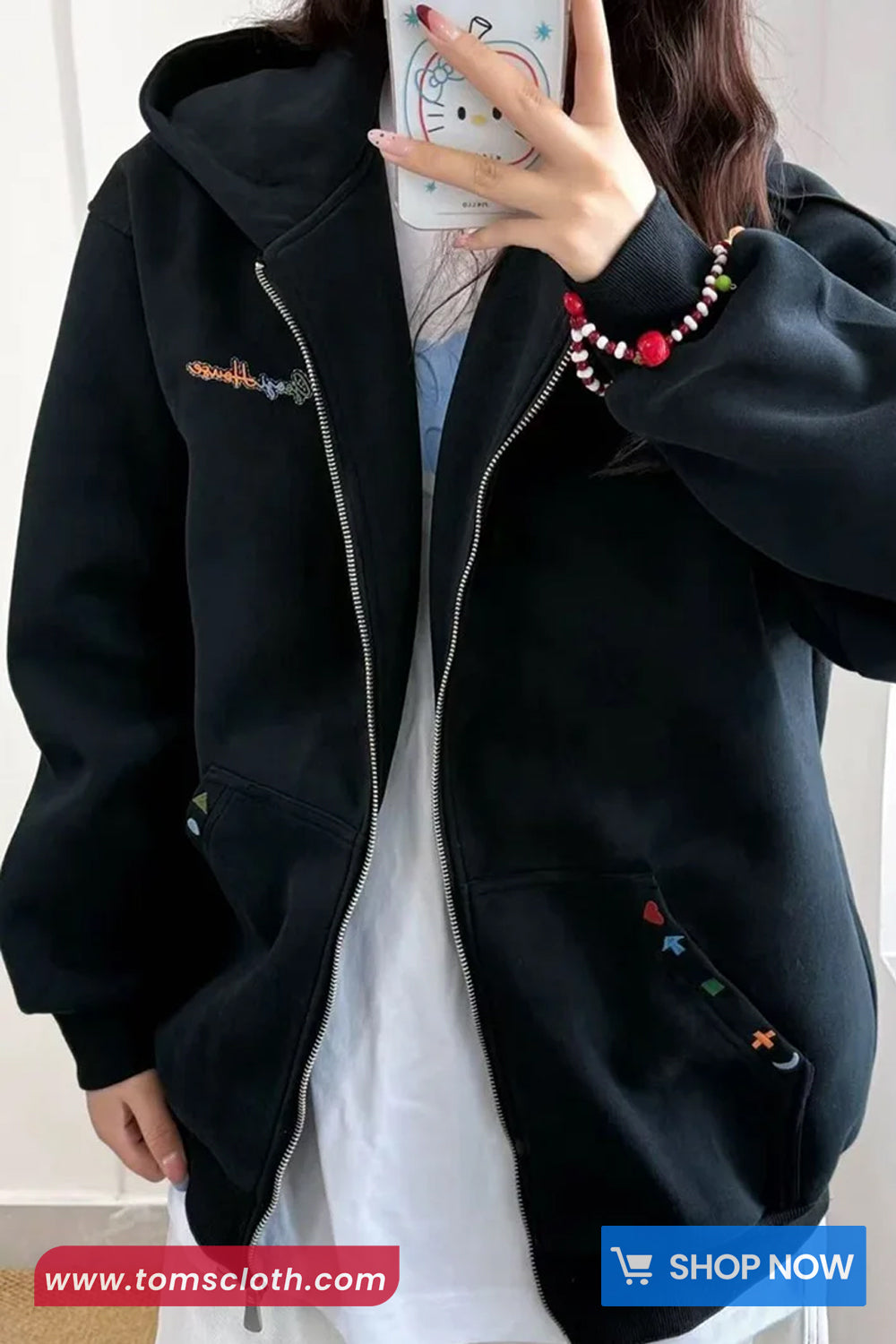 Buy Cute Retro Pattern Embroidered Zipper Hooded Sweater from Tomscloth for your outfit of the day. This item is in stock and ready to order. Enjoy 10% discount with using this code: TOMS_MANIA .