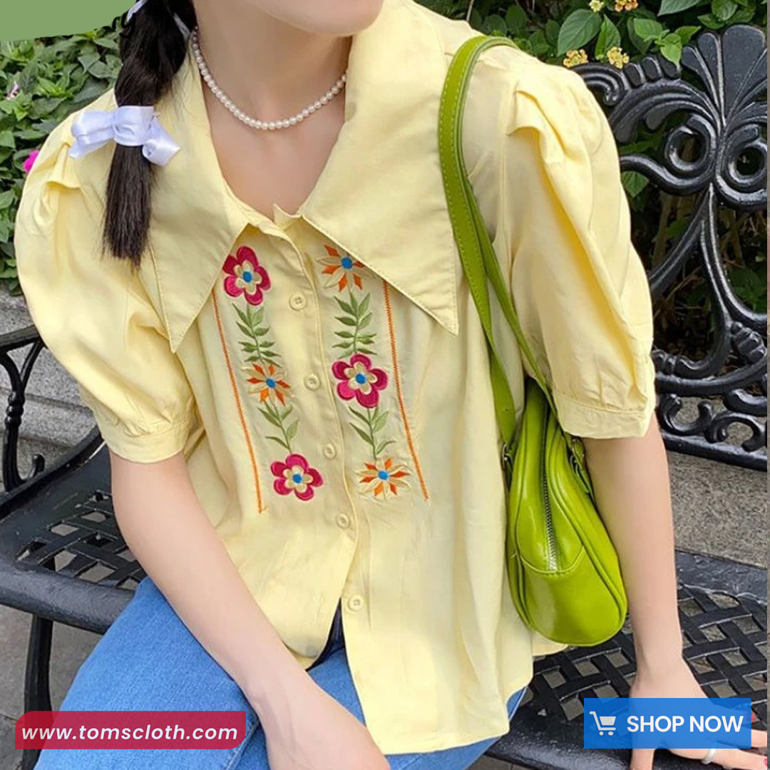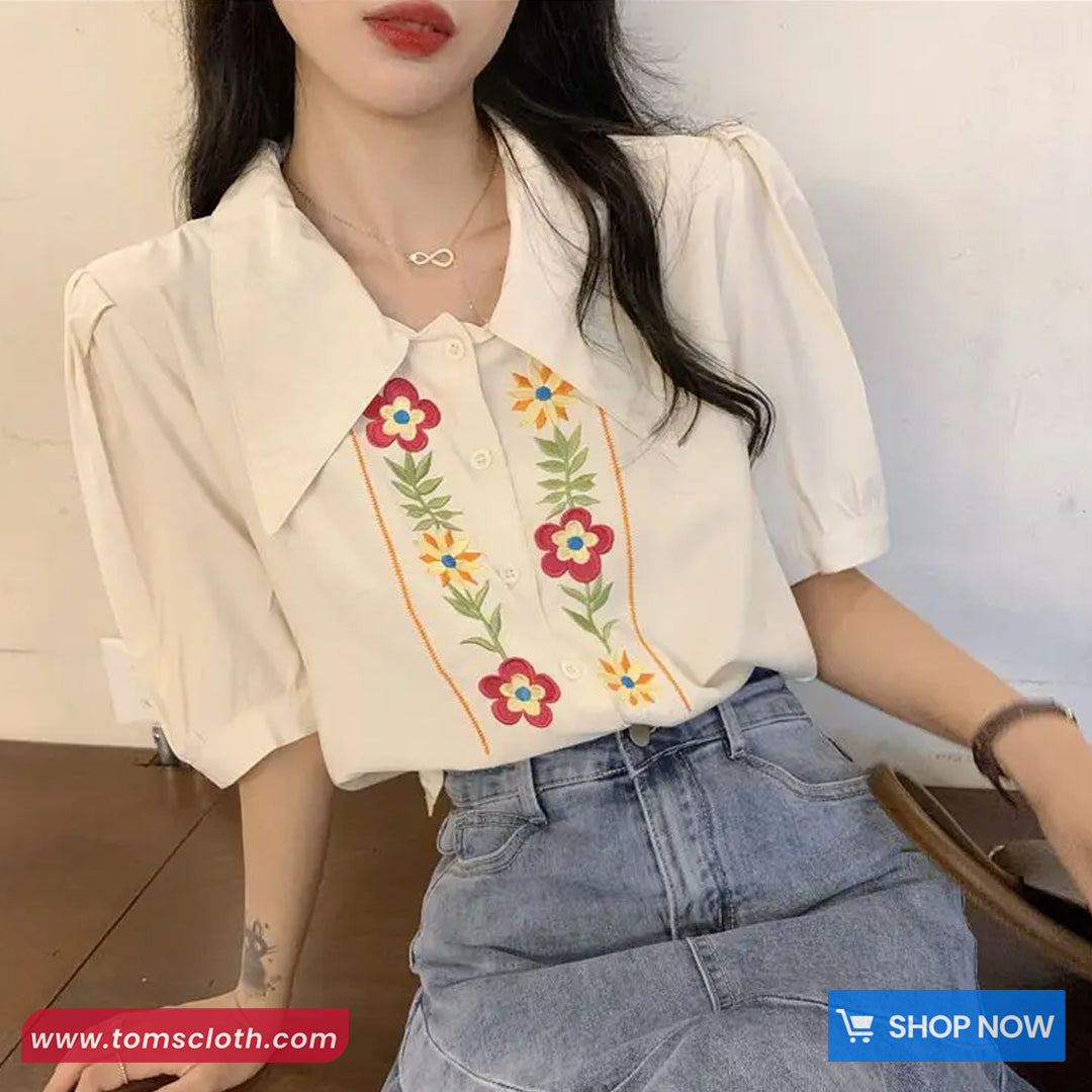 Buy Flower Embroidered Lapel Collar Vintage Blouse Shirt from Tomscloth for your outfit of the day. This item is in stock and ready to order. Enjoy 10% discount with using this code: TOMS_MANIA .