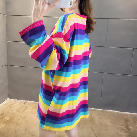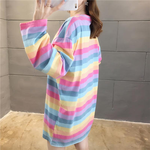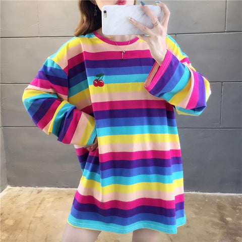 Fruits Printed Stripe Oversize Long Sleeve Shirt