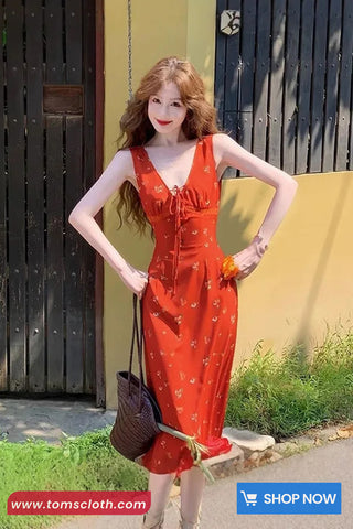 Buy Lace Up Floral Pattern Long V-Neck Dress from Tomscloth for your outfit of the day. This item is in stock and ready to order. Enjoy 10% discount with using this code: TOMS_MANIA . Don’t forget to tag and follow our instagram : Realtomscloth_ . Happy Shopping .