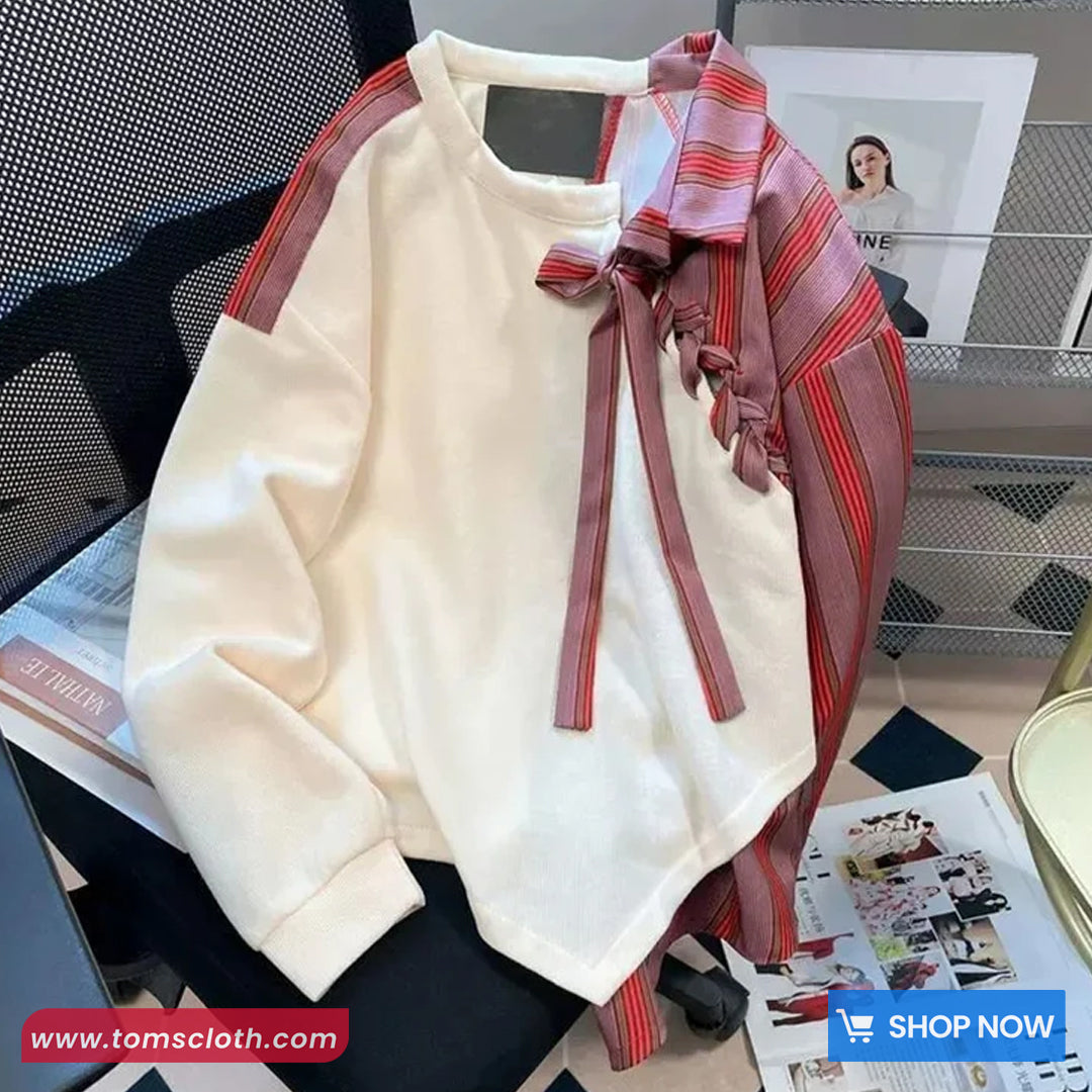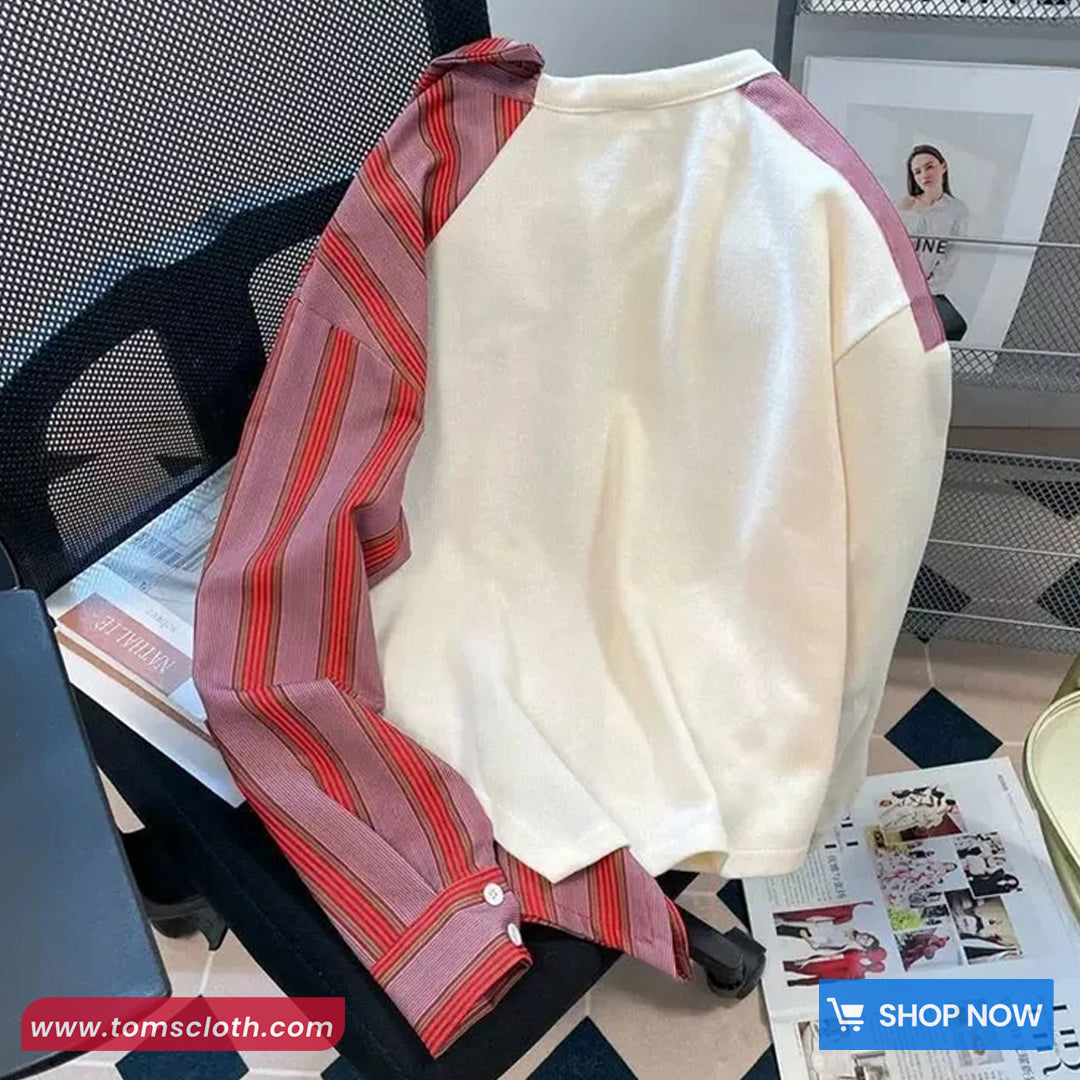 Buy Long Sleeve Combined Irregular Style Striped Collar Sweatshirt from Tomscloth for your outfit of the day. This item is in stock and ready to order. Enjoy 10% discount with using this code: TOMS_MANIA .