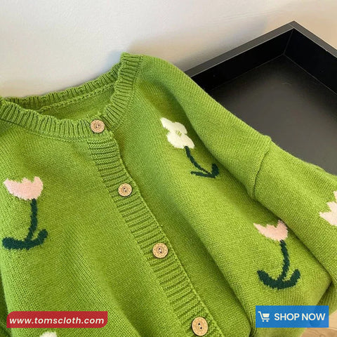 Buy Long Sleeve Cute Floral Embroidered Knitted Green Cardigan Sweater from Tomscloth for your outfit of the day. This item is in stock and ready to order. Enjoy 10% discount with using this code: TOMS_MANIA .