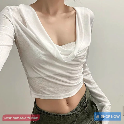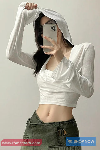 Buy Long Sleeve Elastic Hooded Cropped Shirt from Tomscloth for your outfit of the day. This item is in stock and ready to order. Enjoy 10% discount with using this code: TOMS_MANIA .