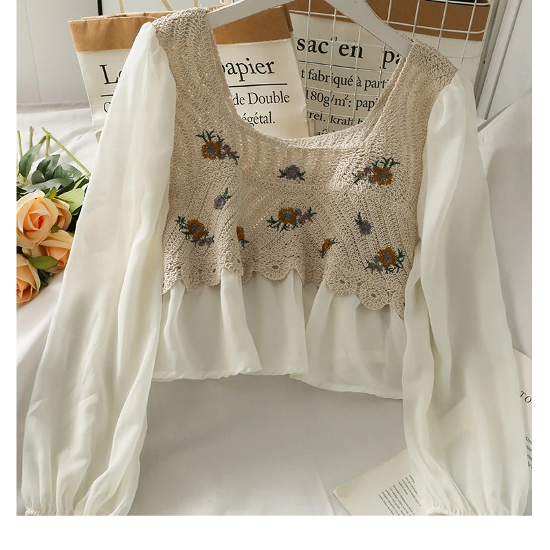 Long Sleeve Flower Embroidered Crochet Blouse – Tomscloth