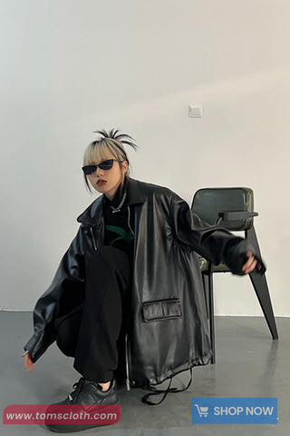 Buy Long Sleeve Front Pockets Streetwear Leather Jacket from Tomscloth for your outfit of the day. This item is in stock and ready to order. Enjoy 10% discount with using this code: TOMS_MANIA .