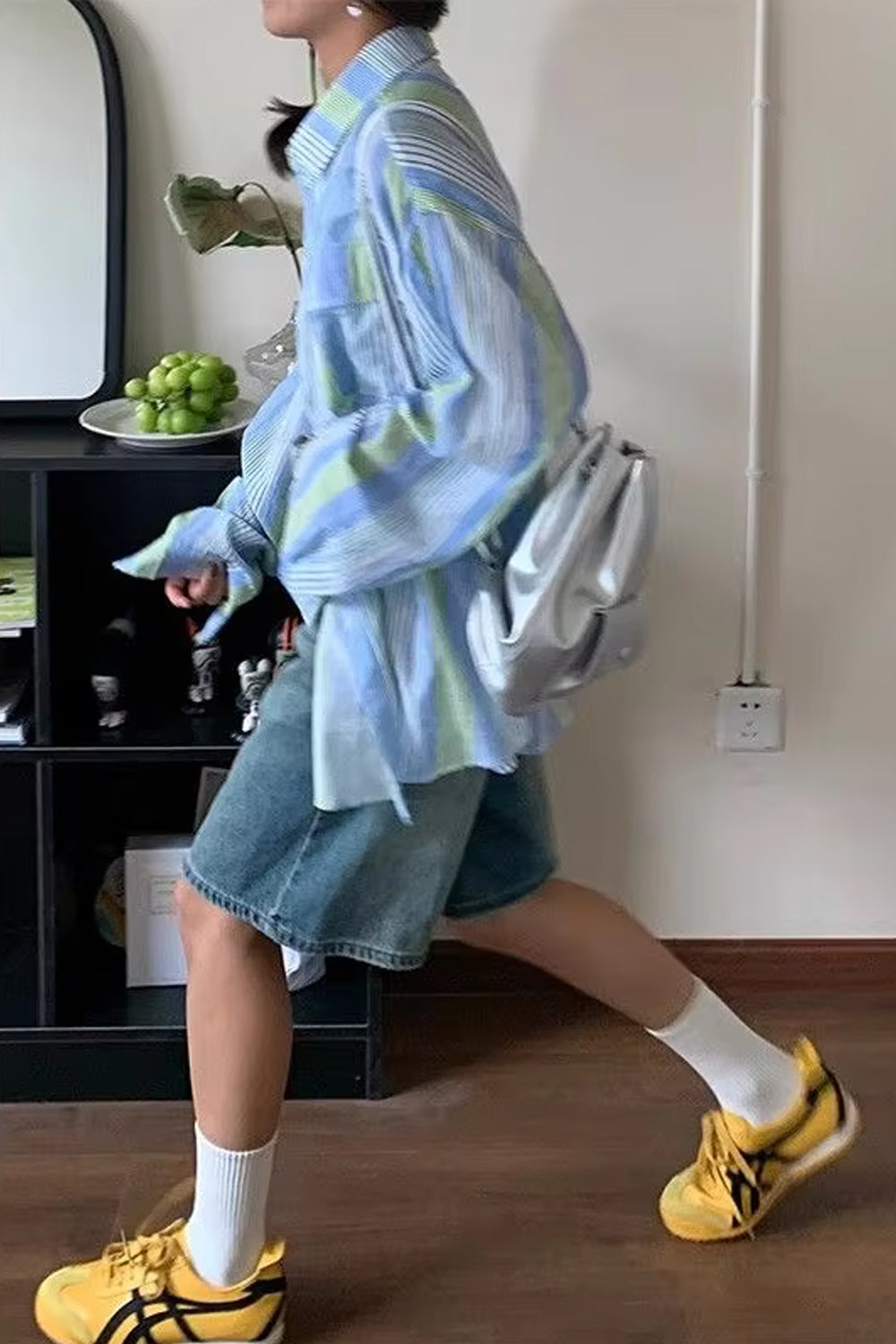 Buy Long Sleeve Green Blue Striped Blouse Shirt from Tomscloth for your outfit of the day. This item is in stock and ready to order. Enjoy 10% discount with using this code: TOMS_MANIA .