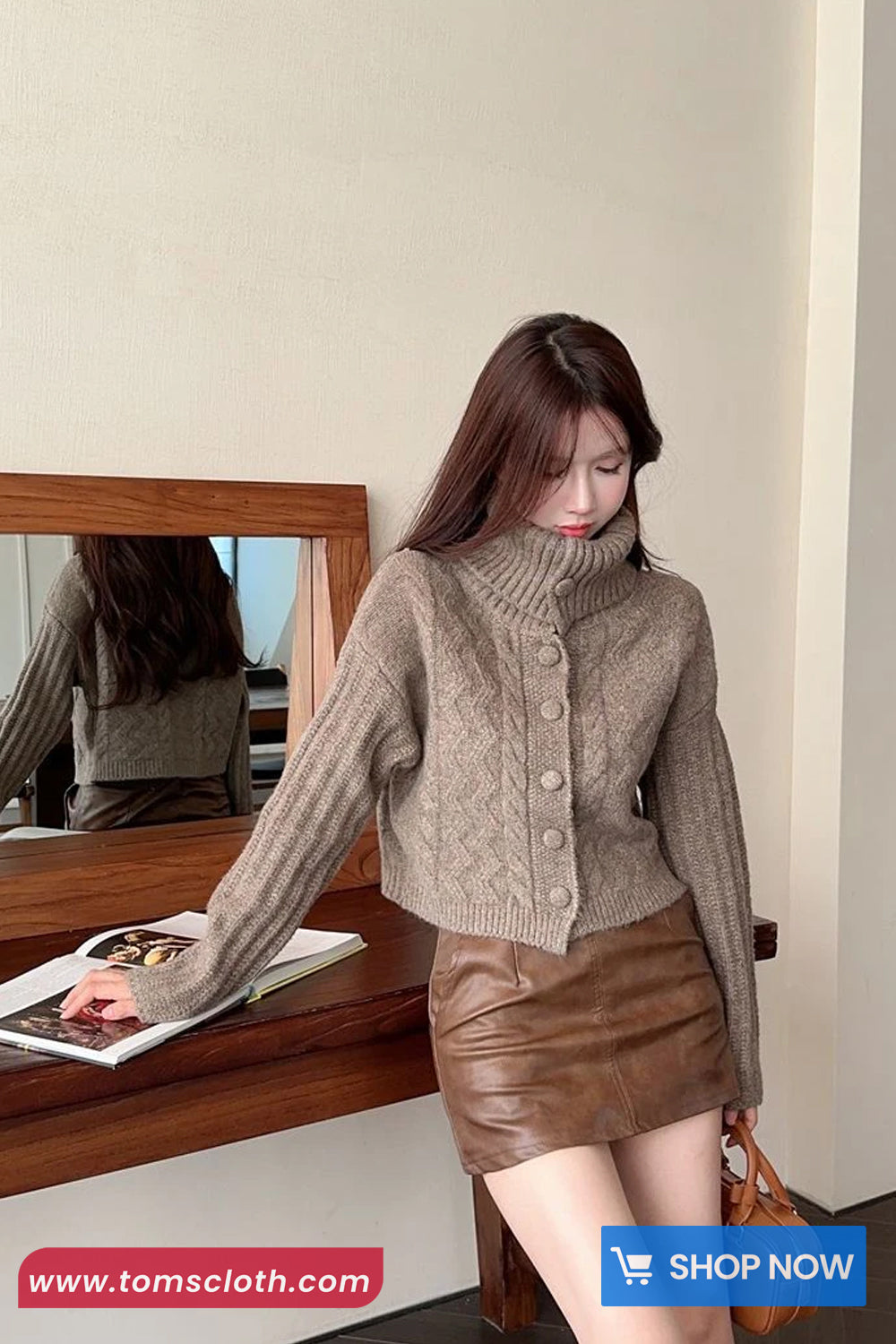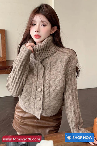 Buy Long Sleeve Knitted Cropped Style Turtleneck Sweater from Tomscloth for your outfit of the day. This item is in stock and ready to order. Enjoy 10% discount with using this code: TOMS_MANIA .