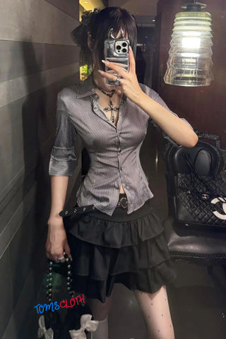 This versatile blouse pairs beautifully with high-waisted skirts, tailored trousers, denim jeans, or chic office pants, allowing you to create multiple fashionable looks. Whether you're dressing for work, a dinner date, a social gathering, or a casual outing, the Long Sleeve Lace Black Bandage Striped Blouse Shirt delivers timeless elegance and modern style.