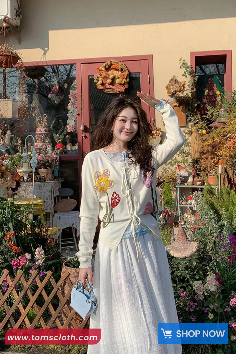 Buy Long Sleeve Lace Tie Flowers Knitted Cardigan Sweater from Tomscloth for your outfit of the day. This item is in stock and ready to order. Enjoy 10% discount with using this code: TOMS_MANIA .