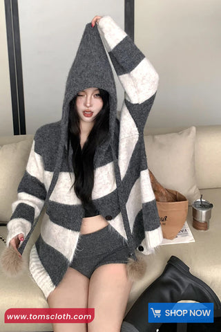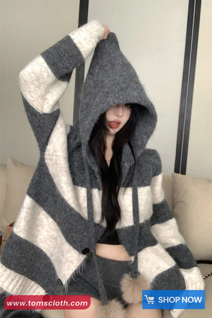 Buy Long Sleeve Lace Tie Hooded Striped Sweater from Tomscloth for your outfit of the day. This item is in stock and ready to order. Enjoy 10% discount with using this code: TOMS_MANIA .