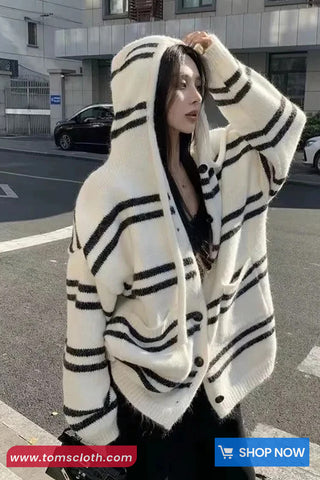 Buy Long Sleeve Loose Striped Hooded Cardigan Sweater from Tomscloth for your outfit of the day. This item is in stock and ready to order. Enjoy 10% discount with using this code: TOMS_MANIA .