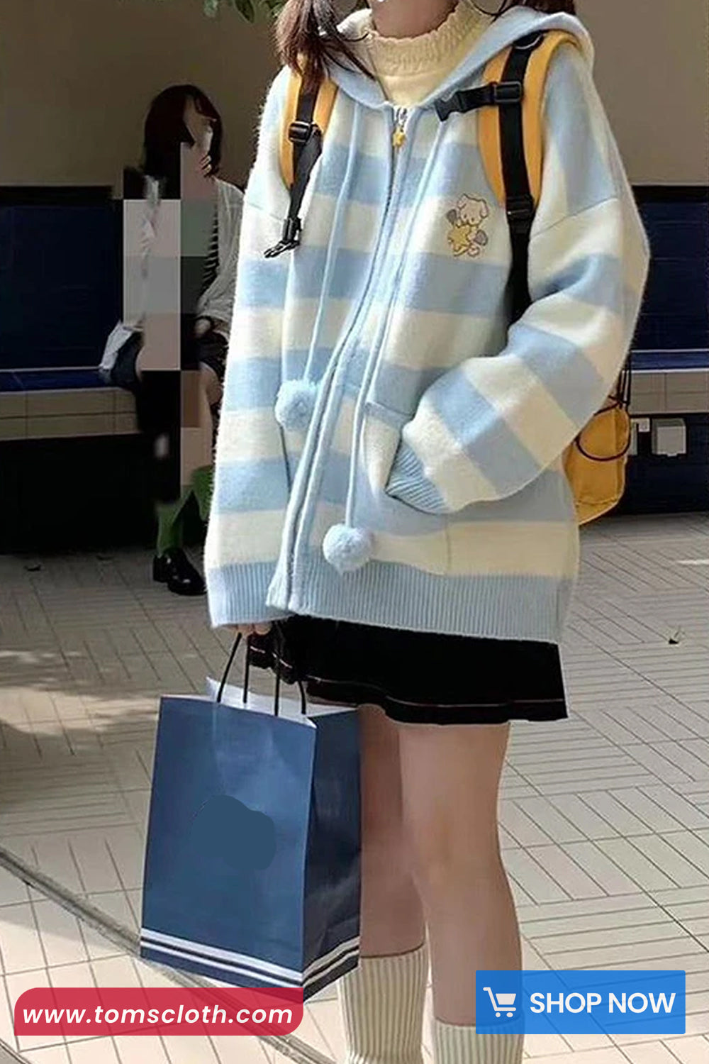 Buy Long Sleeve Puppy Embroidered Striped Hooded Sweater from Tomscloth for your outfit of the day. This item is in stock and ready to order. Enjoy 10% discount with using this code: TOMS_MANIA .