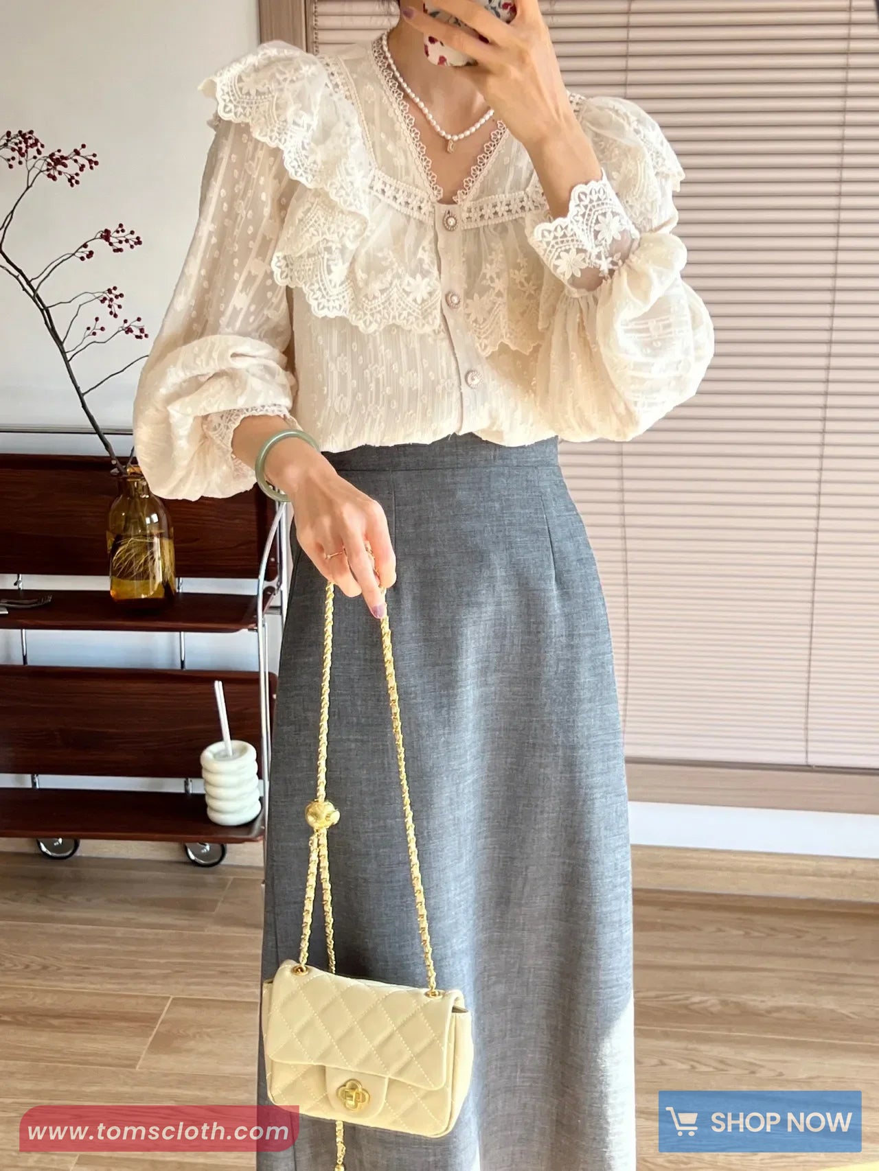 Buy Long Sleeve Retro Elegant Lace Flounce Blouse Shirt from Tomscloth for your outfit of the day. This item is in stock and ready to order. Enjoy 10% discount with using this code: TOMS_MANIA .