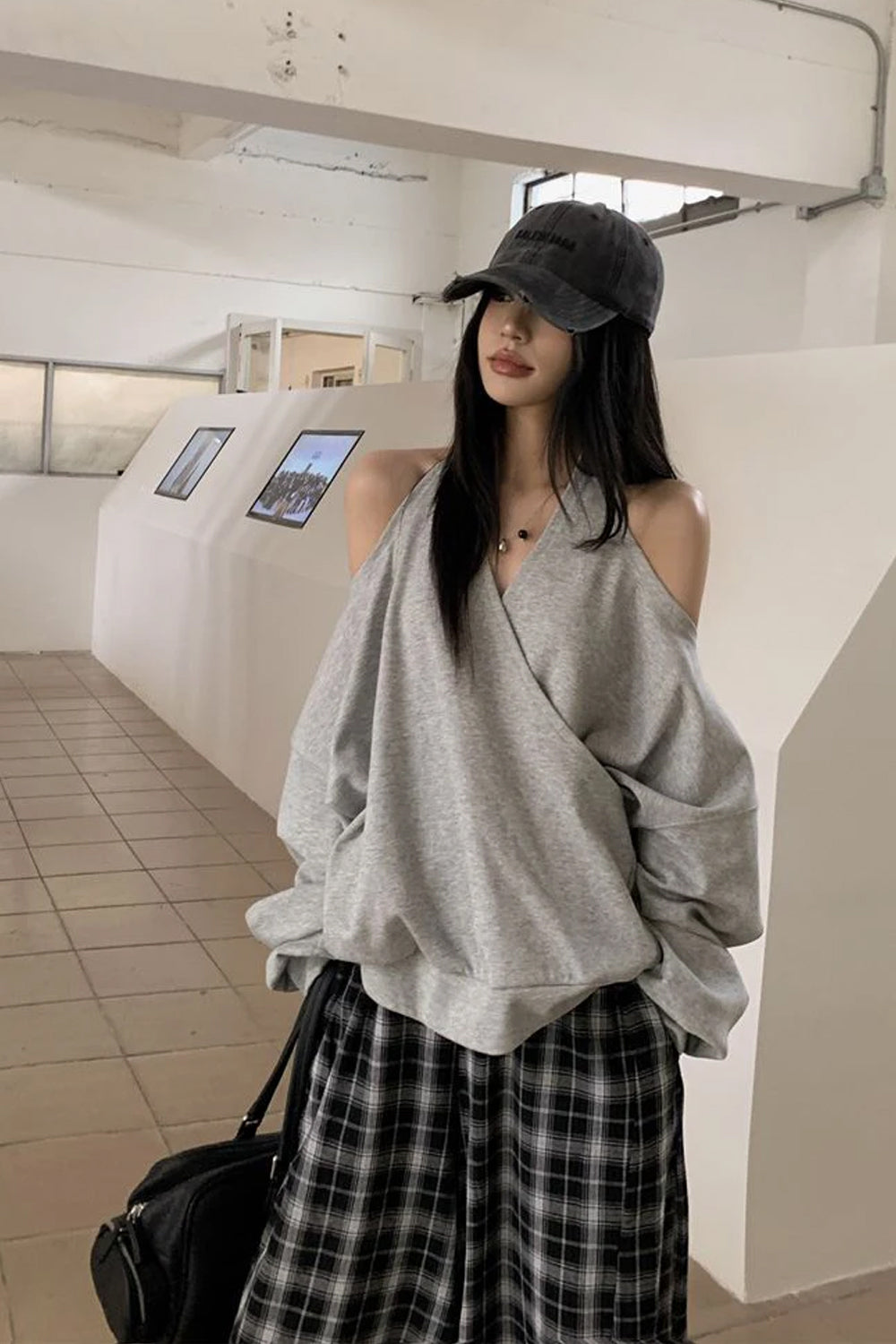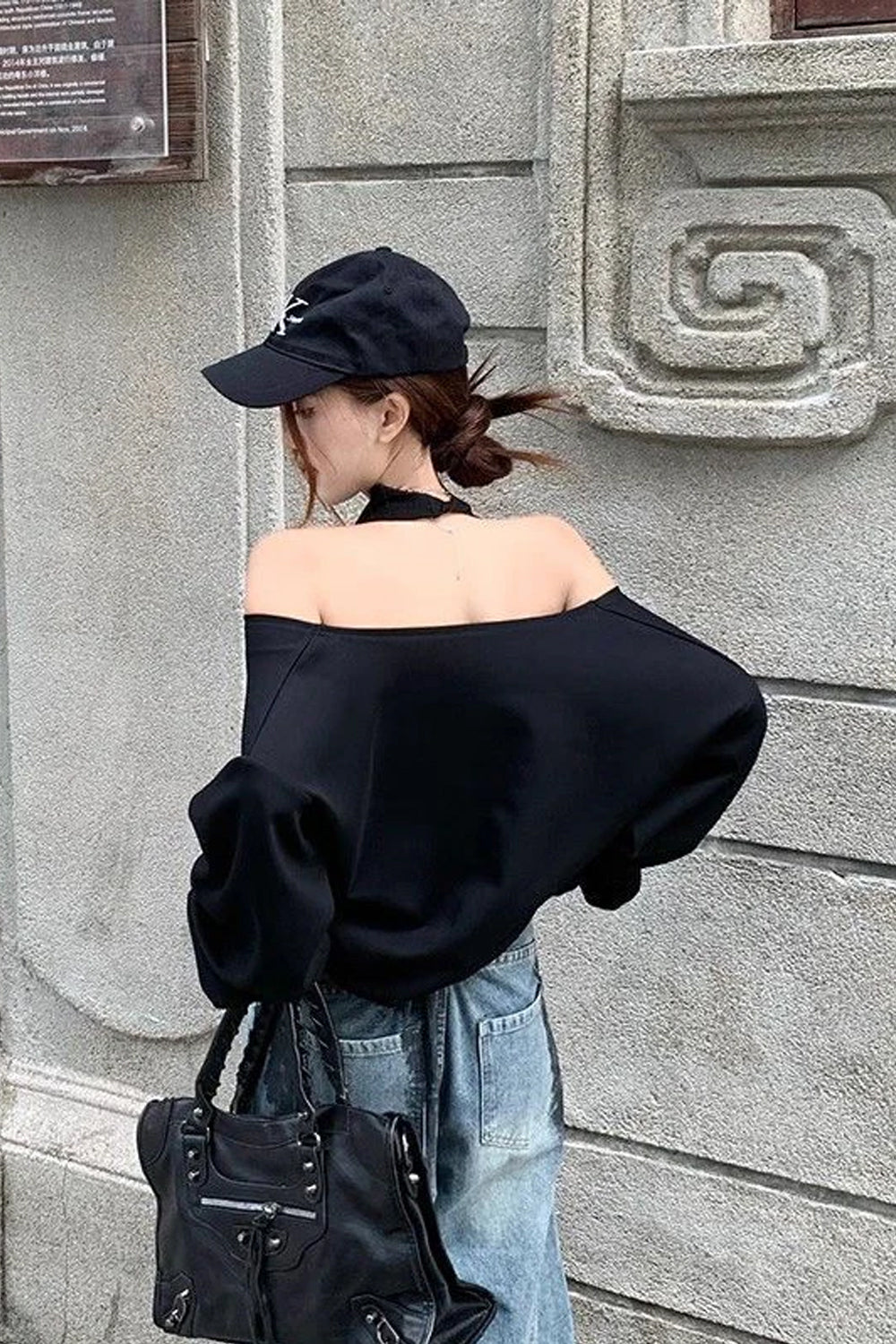 Long Sleeve Sexy Off Shoulder Halter Neck Sweatshirt – Tomscloth