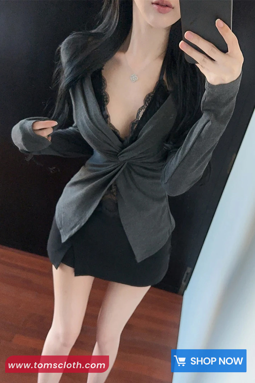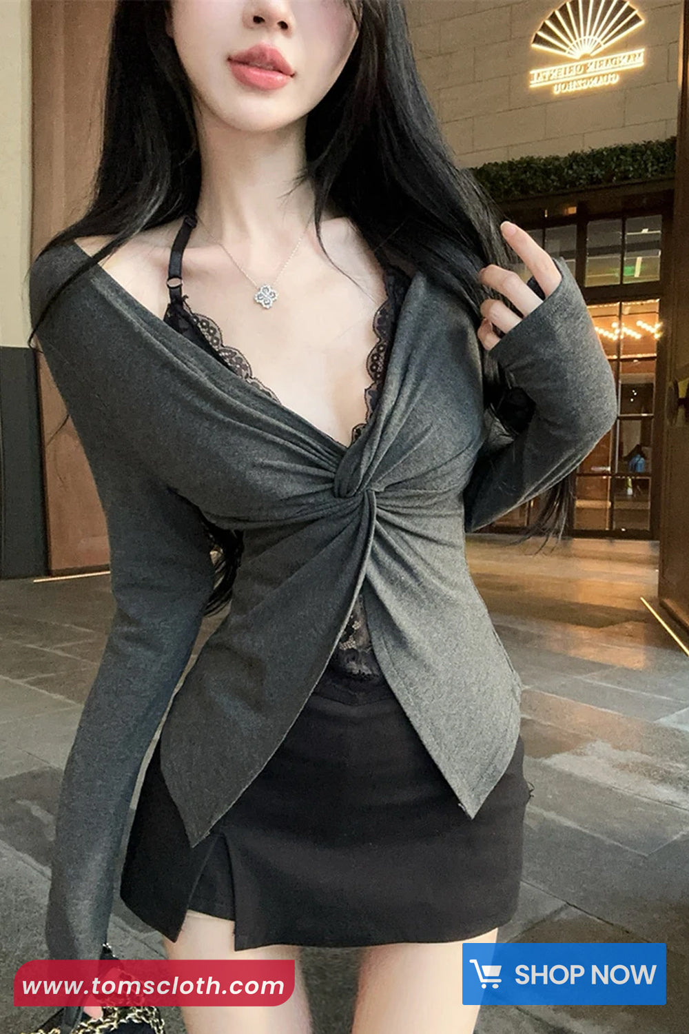Buy Long Sleeve Sexy V-Neck Off Shoulder Lace Patchwork Crop Tops from Tomscloth for your outfit of the day. This item is in stock and ready to order. Enjoy 10% discount with using this code: TOMS_MANIA .