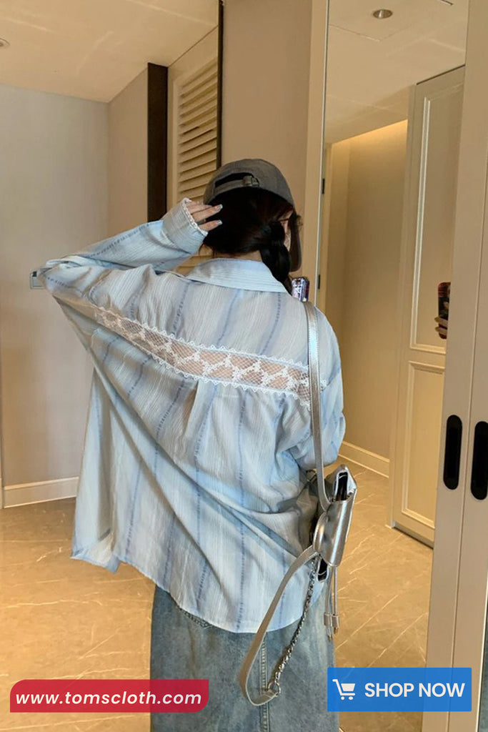Buy Long Sleeve Striped Lace Hollow Out Patchwork Blouse Shirt from Tomscloth for your outfit of the day. This item is in stock and ready to order. Enjoy 10% discount with using this code: TOMS_MANIA .