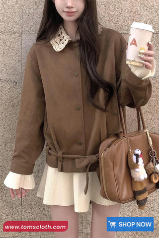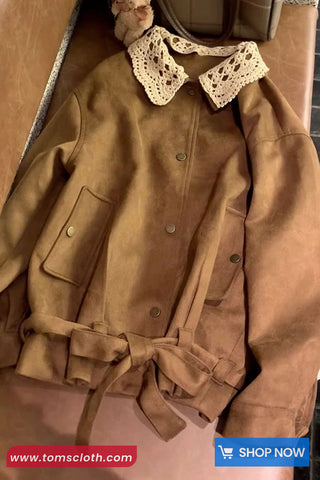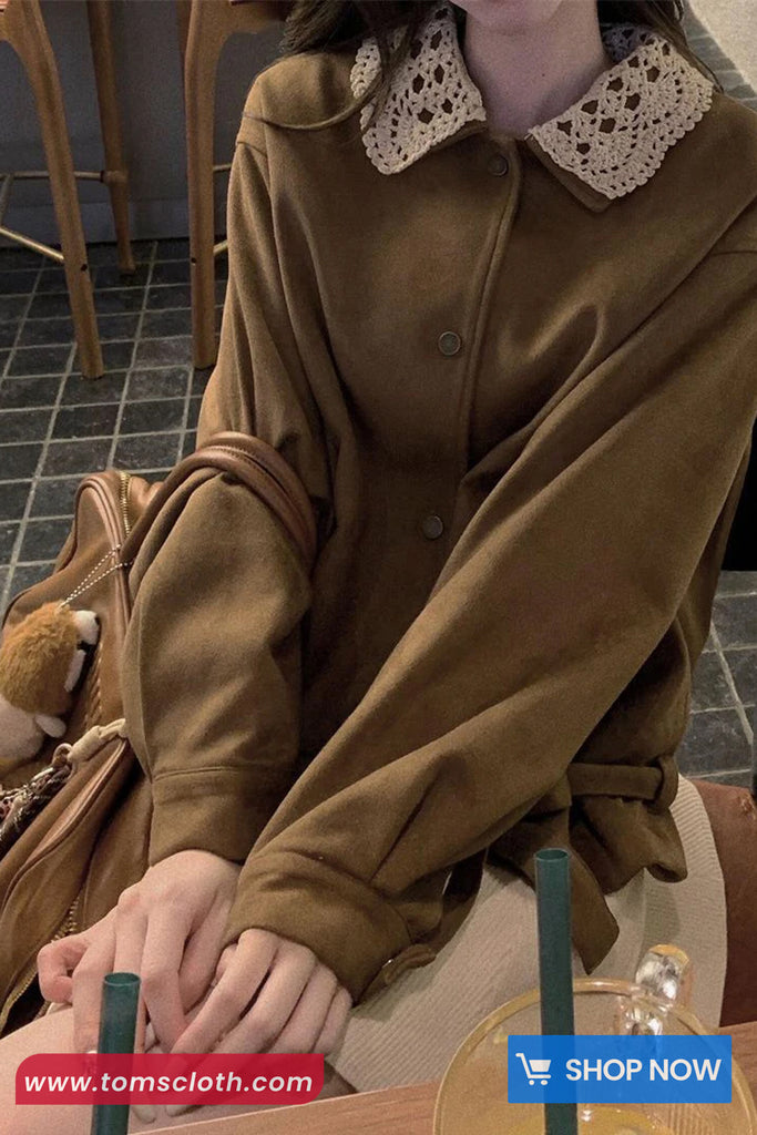 Buy Long Sleeve Turn Down Lace Collar Suede Jacket from Tomscloth for your outfit of the day. This item is in stock and ready to order. Enjoy 10% discount with using this code: TOMS_MANIA .