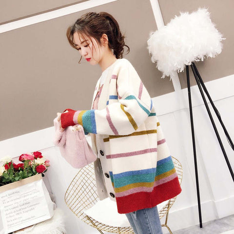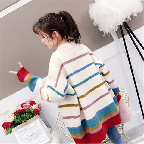 Loose Colorful Striped Cardigan