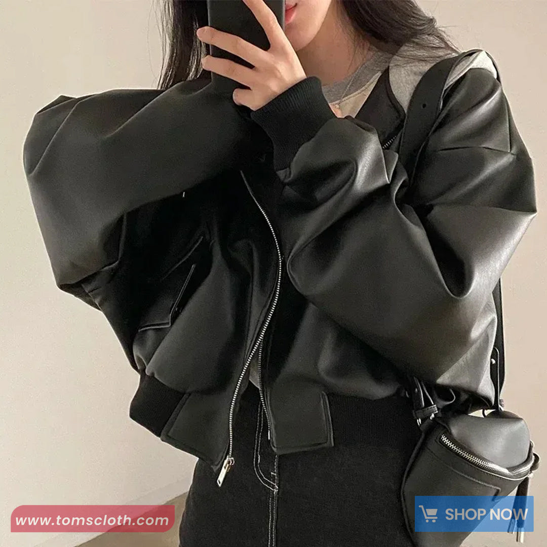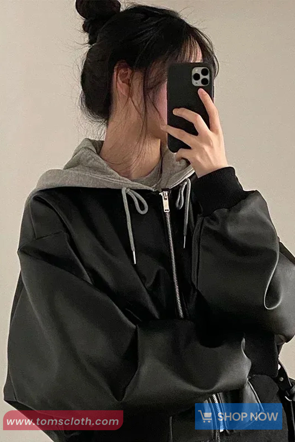 Buy Loose Grey Hooded Leather Cropped Jacket from Tomscloth for your outfit of the day. This item is in stock and ready to order. Enjoy 10% discount with using this code: TOMS_MANIA .