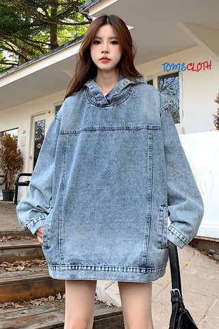 Buy Loose Oversized Retro Washed Denim Hooded Sweatshirt from Tomscloth for your outfit of the day. This item is in stock and ready to order. Enjoy 10% discount with using this code: TOMS_MANIA .
