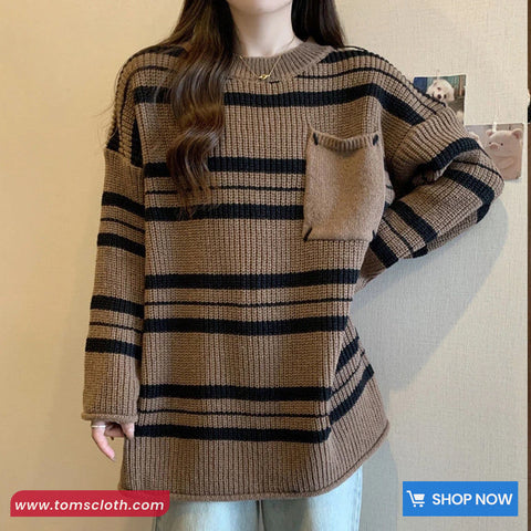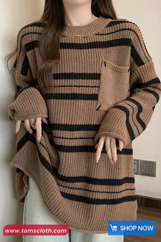 Buy Loose Pocket Striped Knitted Retro Sweater from Tomscloth for your outfit of the day. This item is in stock and ready to order. Enjoy 10% discount with using this code: TOMS_MANIA .