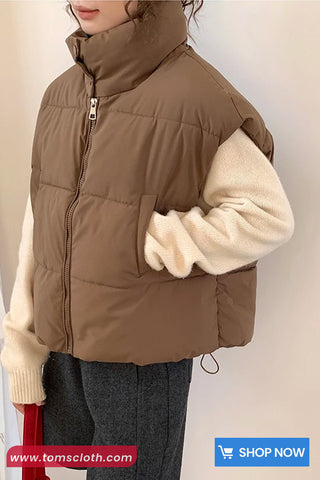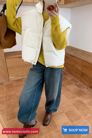 Buy Loose Sleeveless Retro Puffy Vest Jacket from Tomscloth for your outfit of the day. This item is in stock and ready to order. Enjoy 10% discount with using this code: TOMS_MANIA .