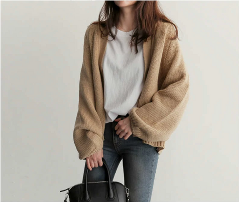 Loose Solid Knitted Cardigan Sweater