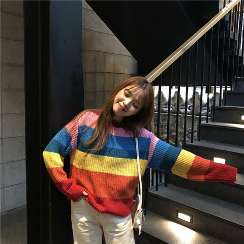 Rainbow Stripe Knitted Sweater