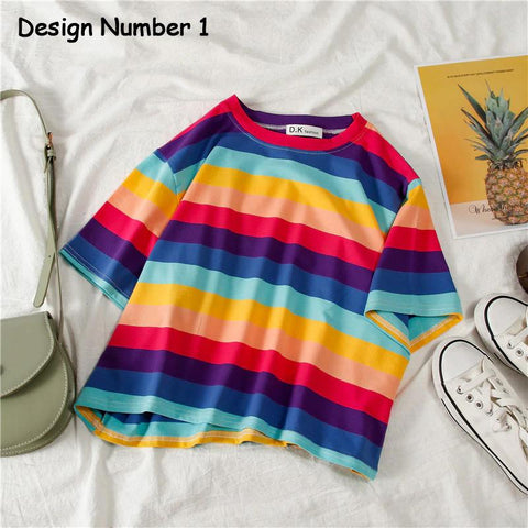 Rainbow Striped Crop Top Shirt