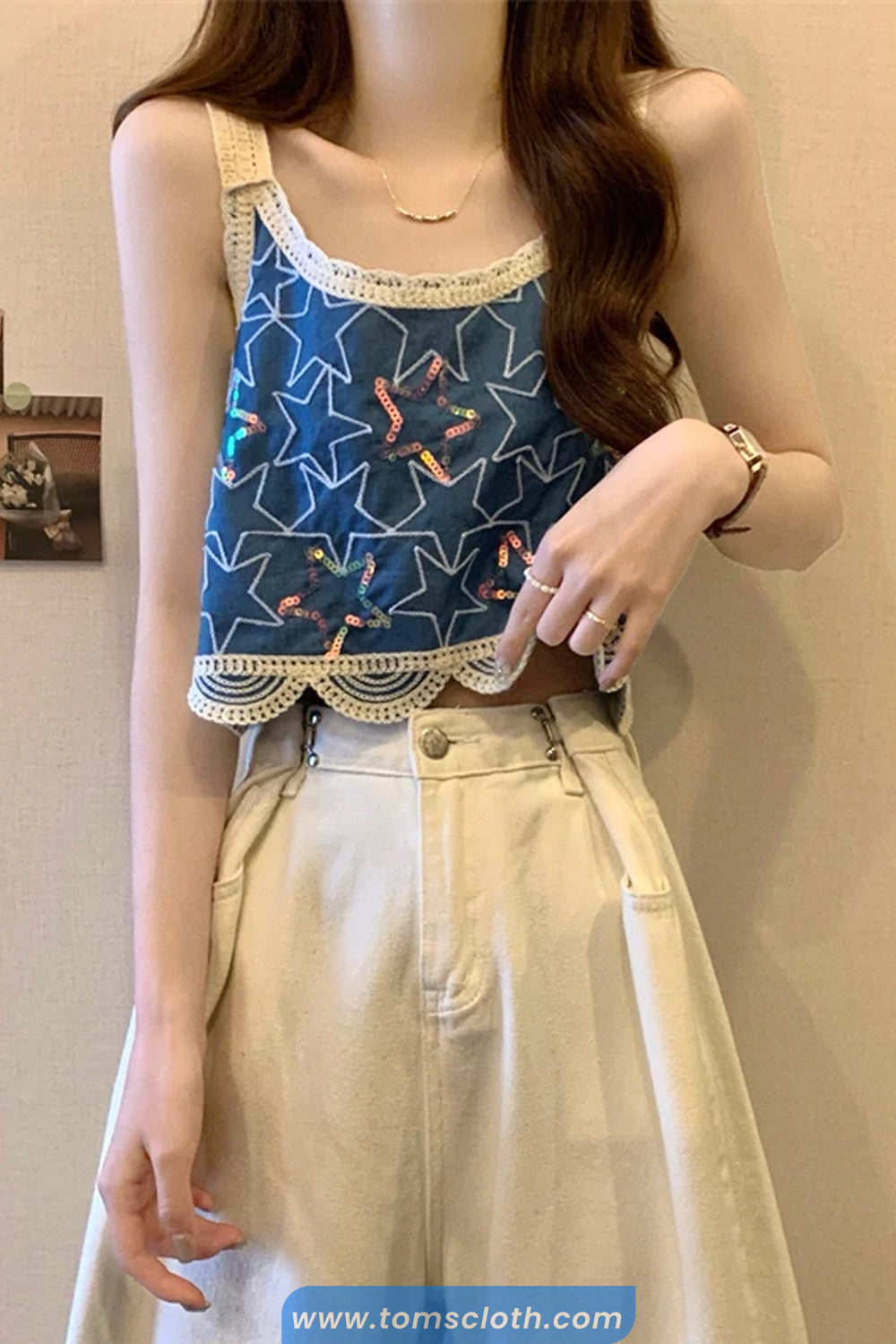 Buy Sequined Stars Pattern Crochet Crop Tops from Tomscloth for your outfit of the day. This item is in stock and ready to order. Enjoy 10% discount with using this code: TOMS_MANIA .