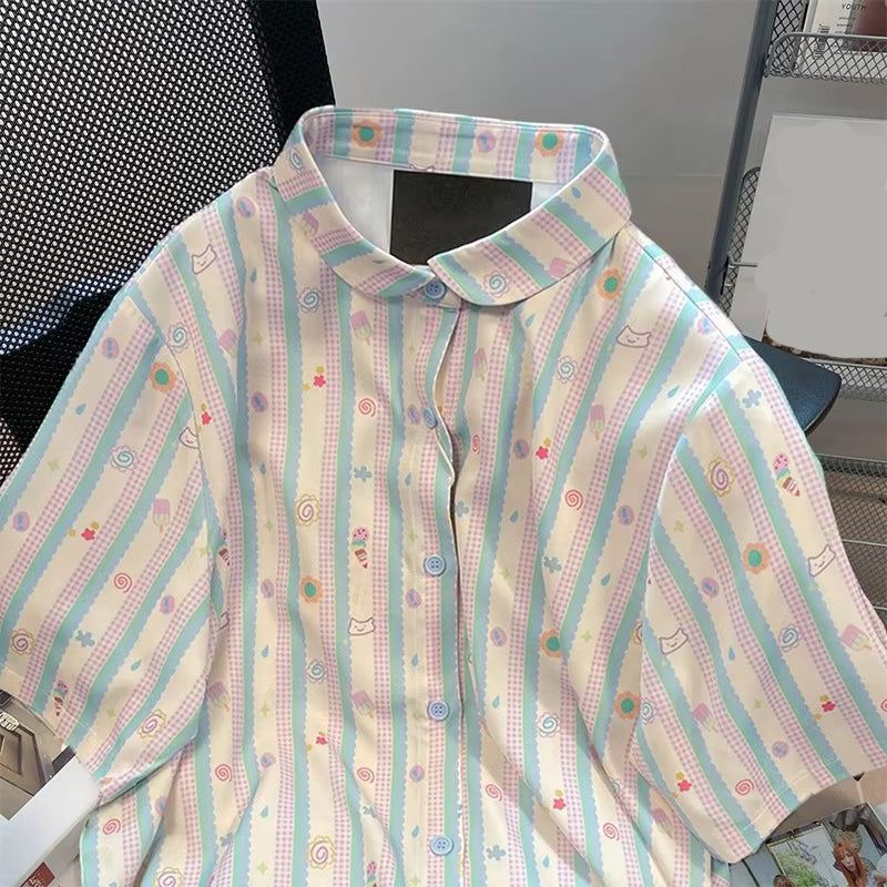 Buy Short Sleeve Cute Little Art Pattern Striped Blouse Shirts from Tomscloth for your outfit of the day. This item is in stock and ready to order. Enjoy 10% discount with using this code: TOMS_MANIA .